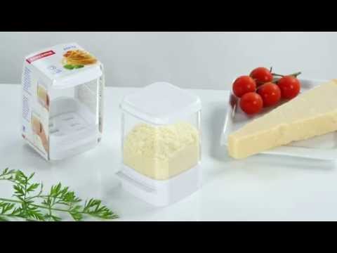 Fabricado de plástico superior diseñado para uso médico y farmacéutico; excelente para servir y guardar higiénicamente parmesano rallado en el frigorífico. El material utilizado es neutro y no afecta a la calidad del parmesano incluso en almacenamiento prolongado. Viene con un dispensador para porciones pequeñas o grandes de parmesano y tapa extraíble para facilitar el llenado. Apto para lavavajillas. Garantía de 3 años.
