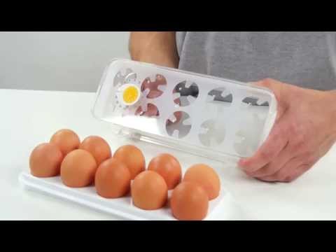 Fabricado de plástico superior diseñado para uso médico y farmacéutico; excelente para guardar higiénicamente huevos frescos. Con un fechador, orificios de ventilación y adaptador para huevos pequeños y huevos grandes para ser guardados y trasportados de forma segura. Suministrado con pestañas de repuesto. La parte inferior del recipiente es apta para lavavajillas. No lavar las otras partes en el lavavajillas. Garantía de 3 años