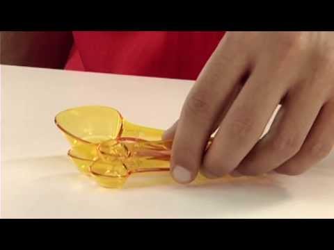 Excelente para medir con precisión líquidos y sustancias en polvo por cucharadas. 1 tsp = 1 cucharita de café (5 ml); 1 tbsp = 1 cuchara mesa (15 ml). Fabricado de plástico resistente, con anilla para colgar. Apto para lavavajillas. Garantía de 3 años.