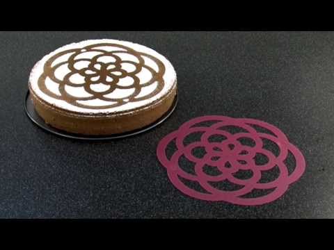 Instrucciones de uso: doblar las dos pequeñas asas de la plantilla hacia arriba, colocar la plantilla sobre el centro del pastel, decorar y retirar la plantilla.