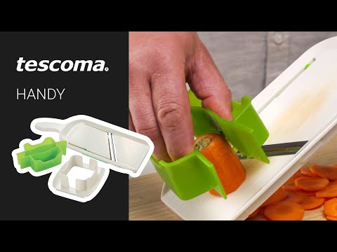 Mandolina con soporte multifunción para cortar cómodamente y de forma segura sin riesgo de lesiones. Afilada hoja de acero inoxidable con grosor de corte ajustable de 1, 2 y 3 mm. Apto para lavavajillas. Garantía de 3 años.