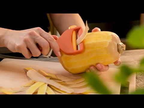 Excelente para pelar calabazas de forma fácil, rápida y segura con pieles finas y gruesas. Ajuste el grosor de la rebanada utilizando el regulador de la derecha de la hoja y pelar la calabaza tirando suavemente del pelador hacia usted mismo. Fabricado de plástico resistente, cuchilla de acero inoxidable de alta calidad con tapa protectora. Este pelador de calabaza será tu aliado perfecto. Apto para lavavajillas. Garantía de 3 años. Los peladores son un utensilio imprescindible en una cocina.