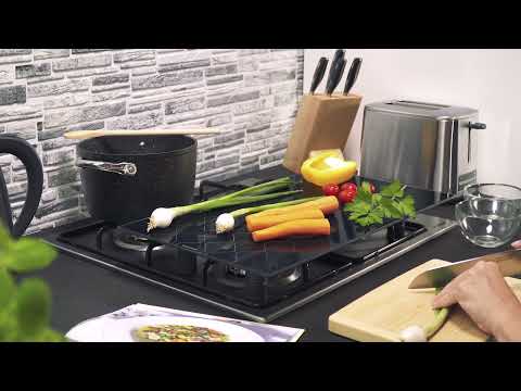 Sirve como zona de trabajo adicional colocada sobre la placa de cocción y protege el área detrás de la placa cuando se utiliza como revestimiento vertical de la pared. Bases con altura regulable, ventosas y apoyos para un uso estable y seguro con placas de vitrocerámica, inducción, eléctricas y de gas. Fabricado de vidrio templado y plástico resistente. Utilizar solo con la placa de cocción apagada. Garantía de 3 años.
