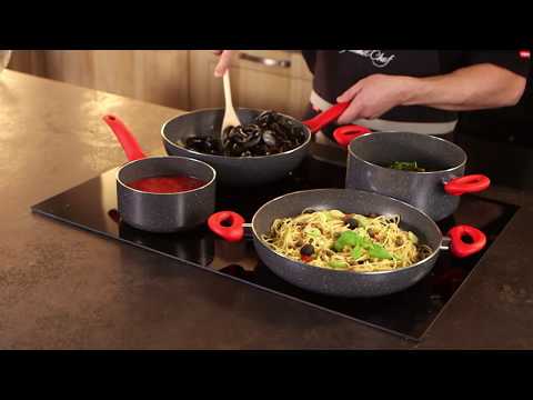Excelente recubrimiento antiadherente con las propiedades de la piedra natural sin pulir, sólido mango antideslizante para un uso seguro y cómodo manejo de la sartén, fondo de inducción de acero inoxidable. Apto para todo tipo de cocinas – eléctricas, gas, vitro cerámica e inducción; apto para lavavajillas. Garantía de 3 años.