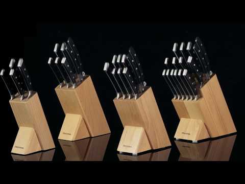 Resistente tacoma para 14 cuchillos, con una ranura multifunción para tijeras trinchar o chaira, fabricada de madera de haya de gran resistencia. Garantía de 3 años.