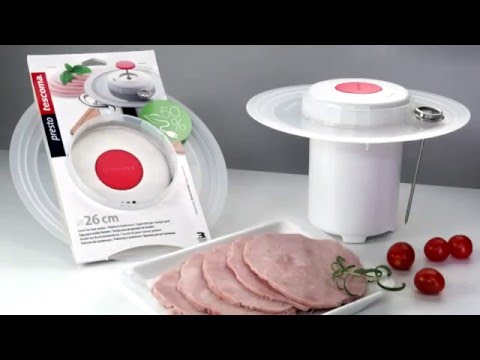 Economiza los costos de energía cocinando fiambre casero hasta un 50%! Con la tapa puesta, el agua en la olla mantiene una temperatura constante y no necesita ser complementado; esto hace que el fiambre sea más fácil de preparar. Diseñado para el Molde para preparar fiambre con termómetro PRESTO (art. 420866), apto para recipientes con un rango de diámetros desde 18 a 24 cm. Fabricado de plástico resistente. Apto para lavavajillas. Garantía de 3 años.